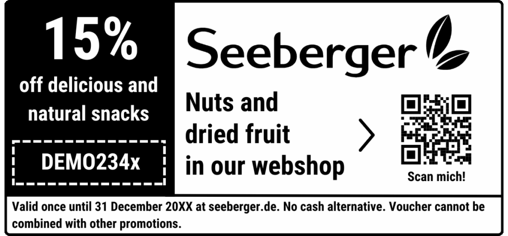 - Individual coupon and QR codes make your offline advertising measurable and seamlessly connect print with digital success.